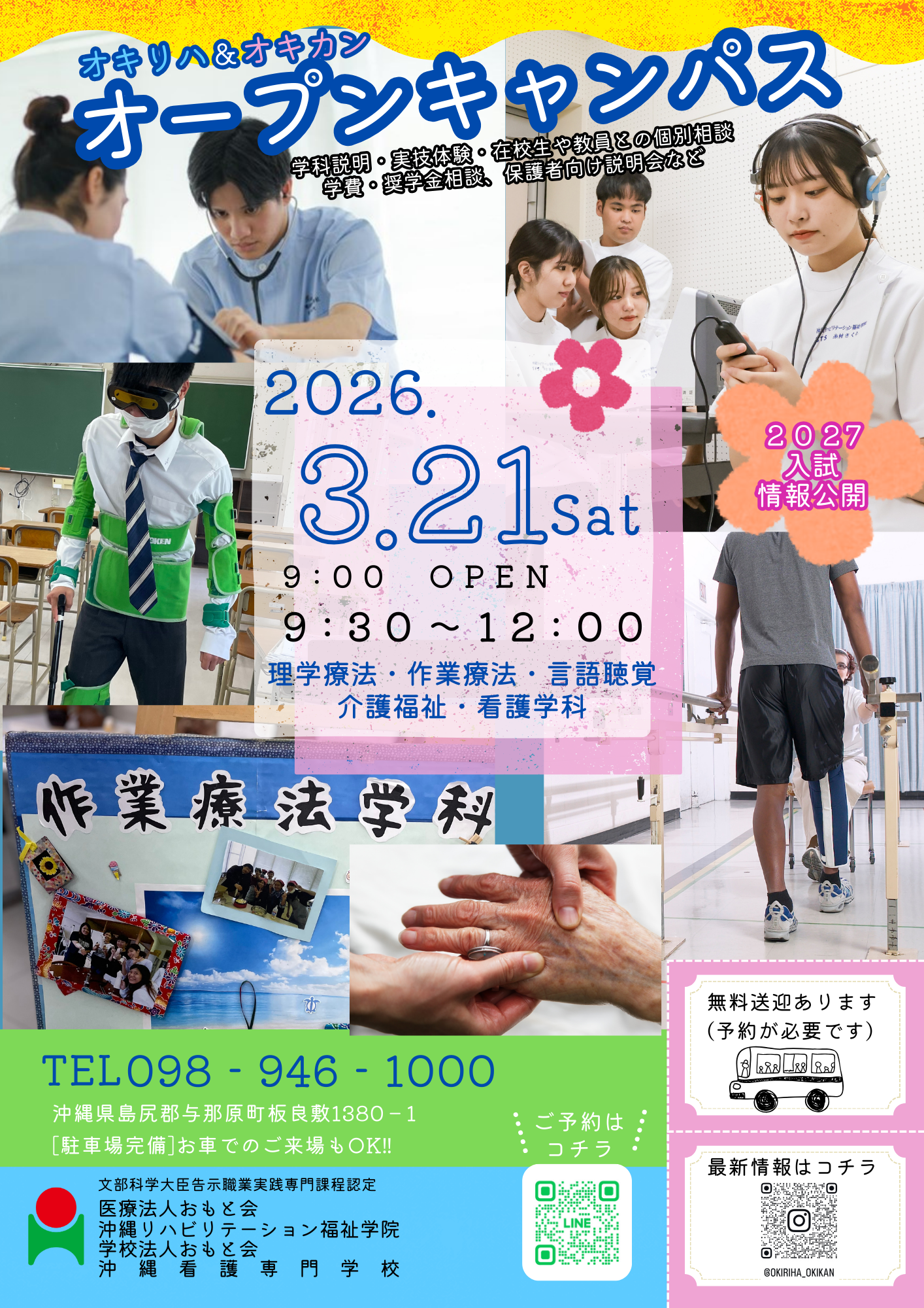 沖縄看護専門学校では、3/21㊏にオープンキャンパスを開催🏫します。