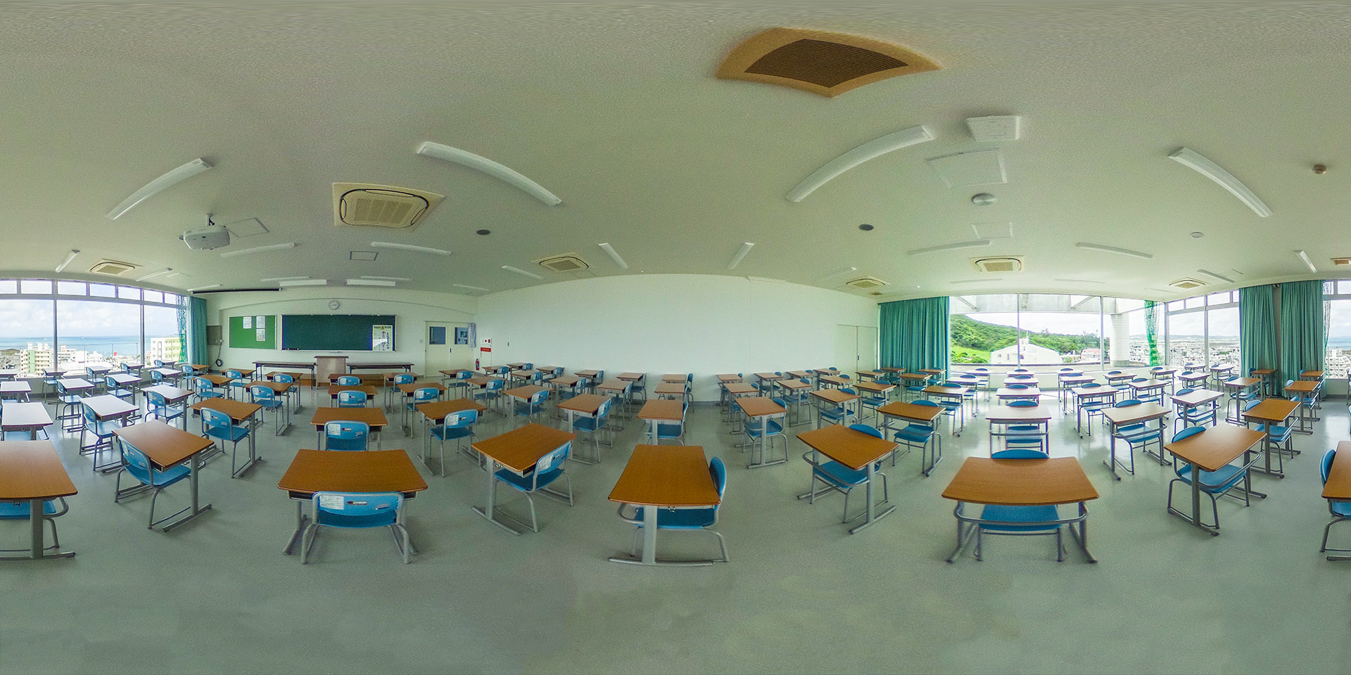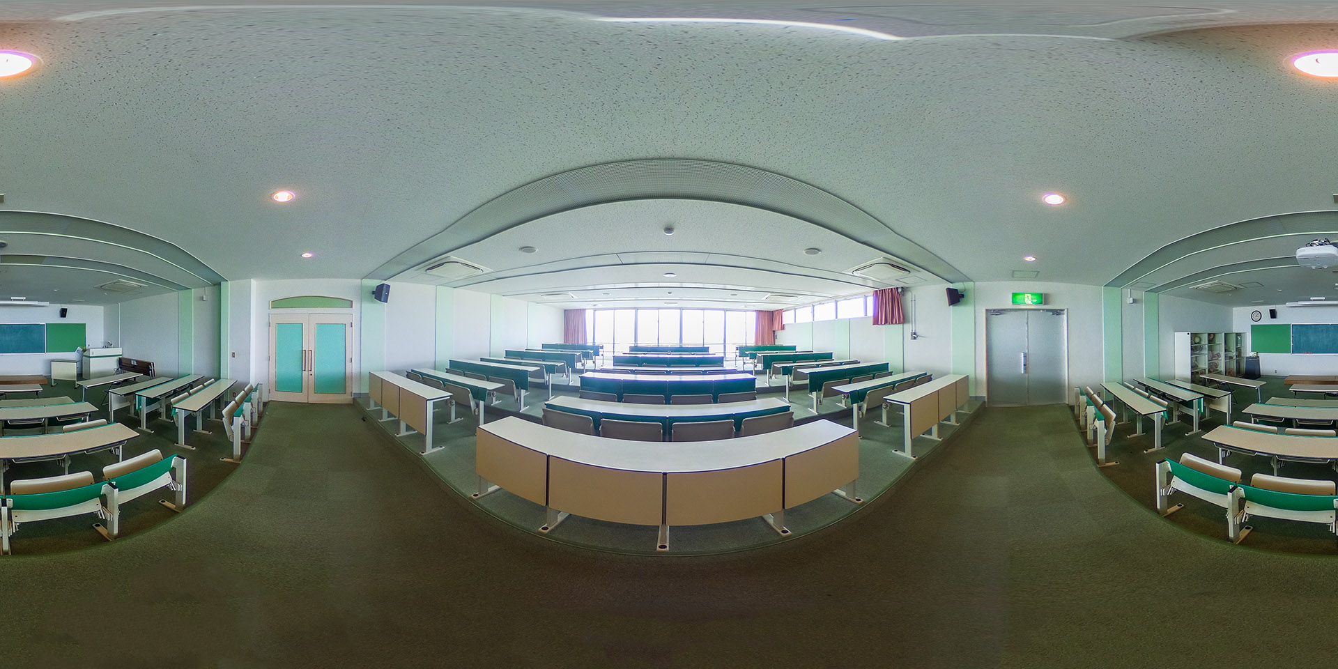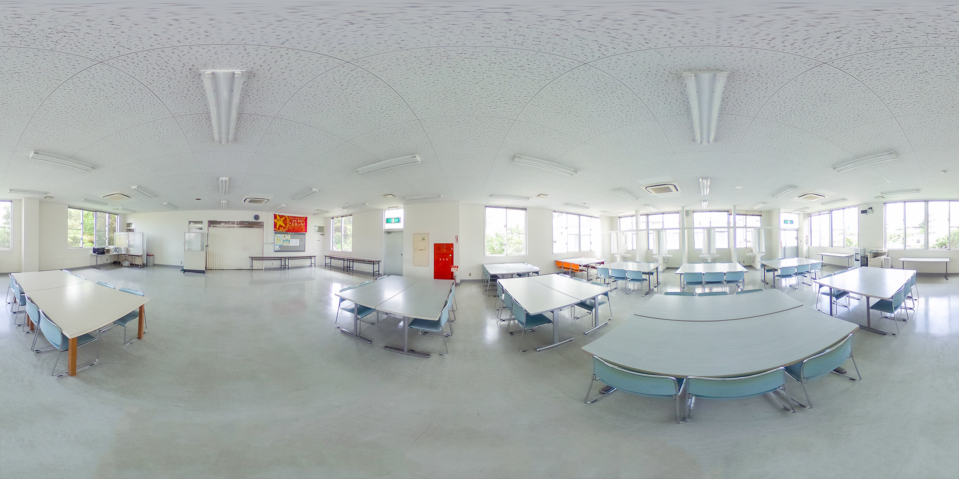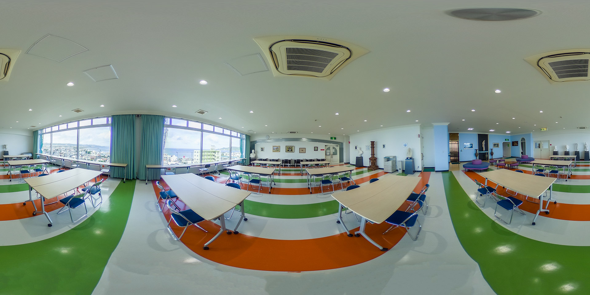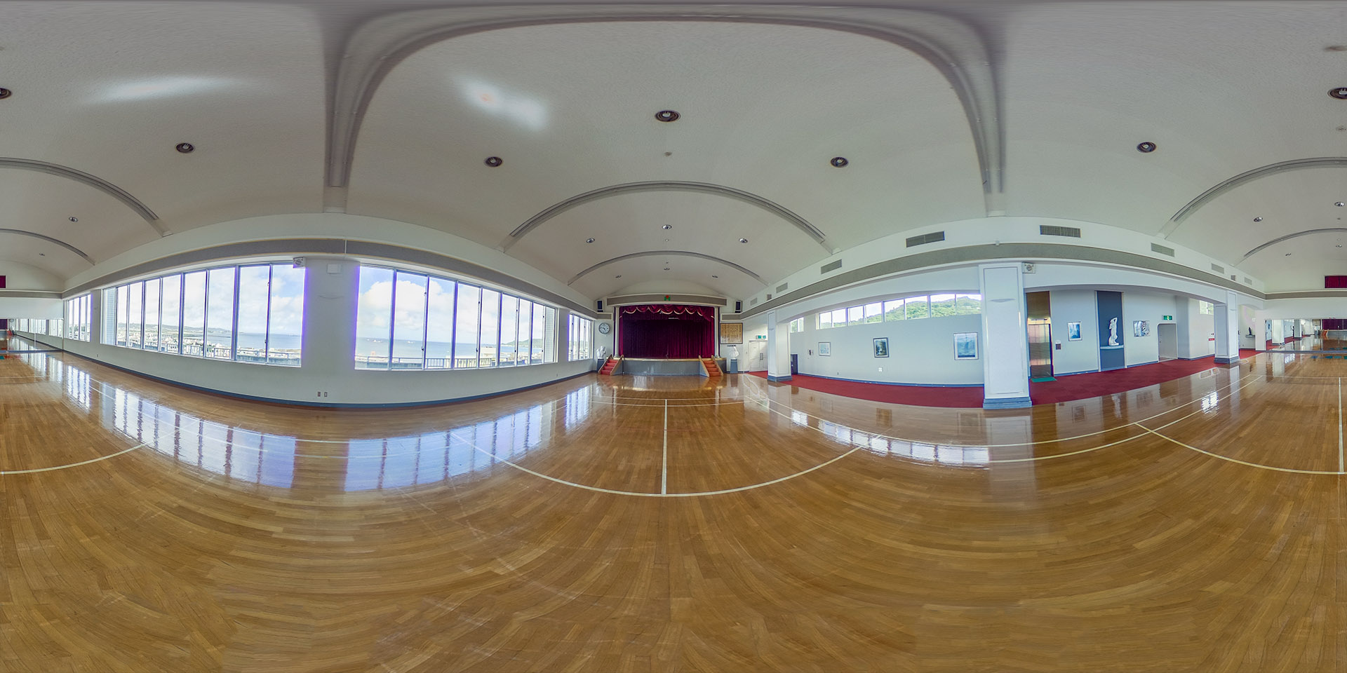 入学式、卒業式、戴帽式などの学校行事から、空手、レクリエーション、ゼミナール発表など大人数での利用が可能な講堂です。放課後は、卓球やバドミントン、ダンスなど運動で利用することもあります。